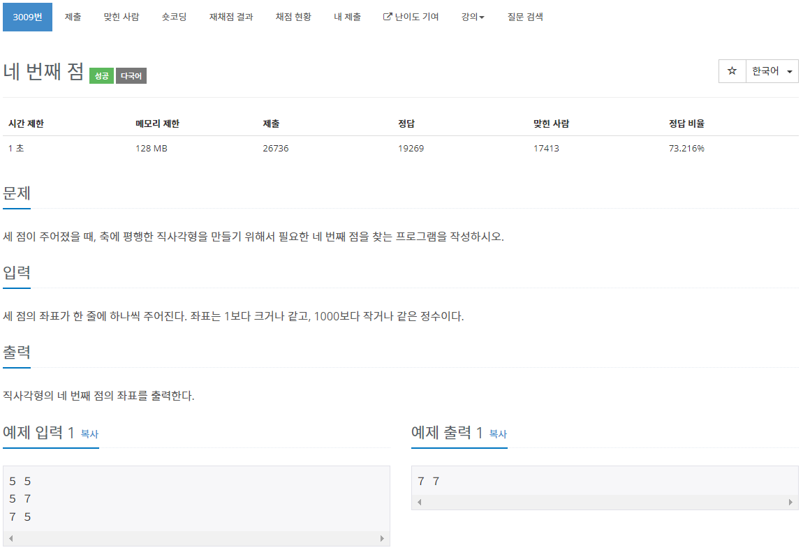 3009번: 네 번째 점