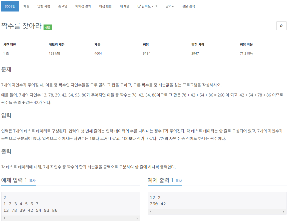 3058번: 짝수를 찾아라