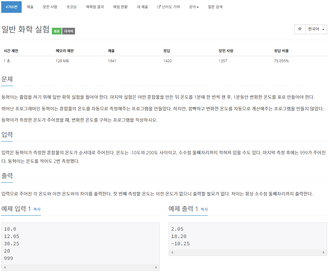 4766번: 일반 화학 실험