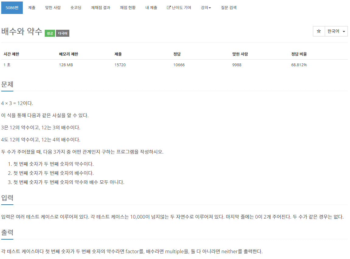 5086번: 배수와 약수