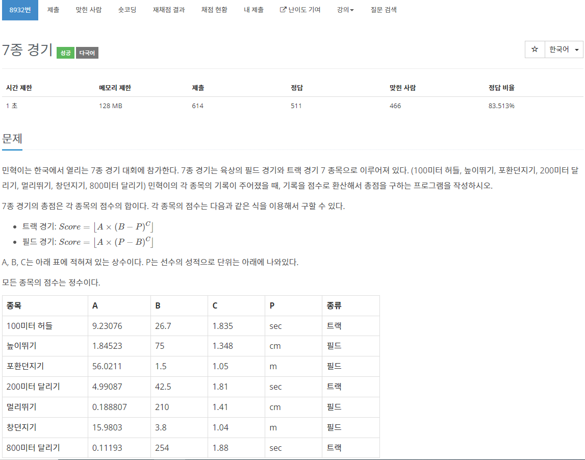 [백준/BOJ] 8932번 : 7종 경기 (JAVA / 자바)백준 2022. 2. 8. 01:20