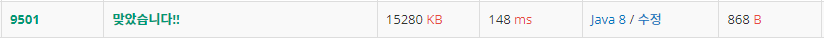 [백준/BOJ] 9550번 : 아이들은 사탕을 좋아해 (JAVA / 자바) (0) 2022.02.09 [백준/BOJ] 9517번 : 아이 러브 크로아티아 (JAVA / 자바) (0) 2022.02.08 [백준/BOJ] 9469번 : 폰 노이만 (JAVA / 자바) (0) 2022.02.08 [백준/BOJ] 9437번 : 사라진 페이지 찾기 (JAVA / 자바) (0) 2022.02.08 [백준/BOJ] 9366번 : 삼각형 분류 (JAVA / 자바) (0) 2022.02.08