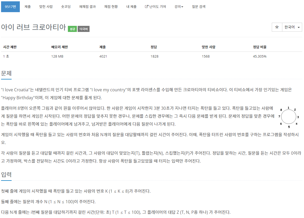 그렇게 문제를 풀수있을때까지 푼 다음 폭탄을 들고있던 사람이 출력값이 된다.