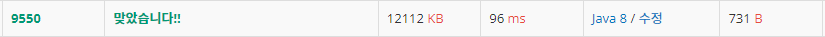 [백준/BOJ] 10103번 : 주사위 게임 (JAVA / 자바) (0) 2022.02.09 [백준/BOJ] 9610번 : 사분면 (JAVA / 자바) (0) 2022.02.09 [백준/BOJ] 9517번 : 아이 러브 크로아티아 (JAVA / 자바) (0) 2022.02.08 [백준/BOJ] 9501번 : 꿍의 우주여행 (JAVA / 자바) (0) 2022.02.08 [백준/BOJ] 9469번 : 폰 노이만 (JAVA / 자바) (0) 2022.02.08