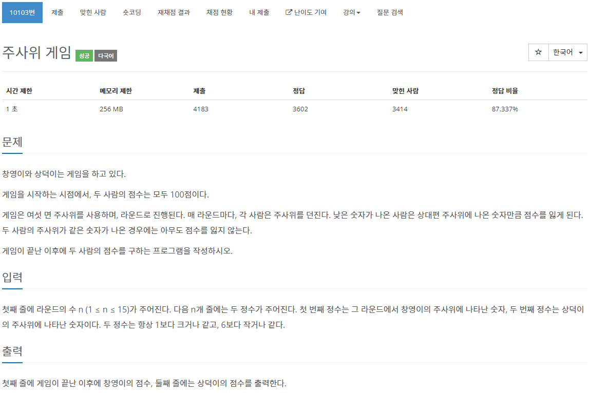 10103번: 주사위 게임