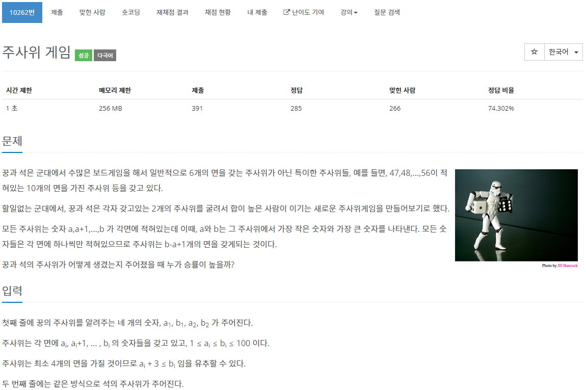 10262번: 주사위 게임