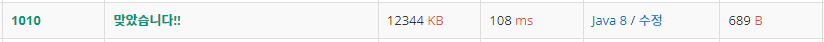 [백준/BOJ] 10871번 : X보다 작은 수 (JAVA / 자바) (0) 2022.02.13 [백준/BOJ] 10834번 : 벨트 (JAVA / 자바) (0) 2022.02.13 [백준/BOJ] 1145번 : 적어도 대부분의 배수 (JAVA / 자바) (0) 2022.02.12 [백준/BOJ] 1110번 : 더하기 사이클 (JAVA / 자바) (0) 2022.02.12 [백준/BOJ] 1032번 : 명령 프롬프트 (JAVA / 자바) (0) 2022.02.12