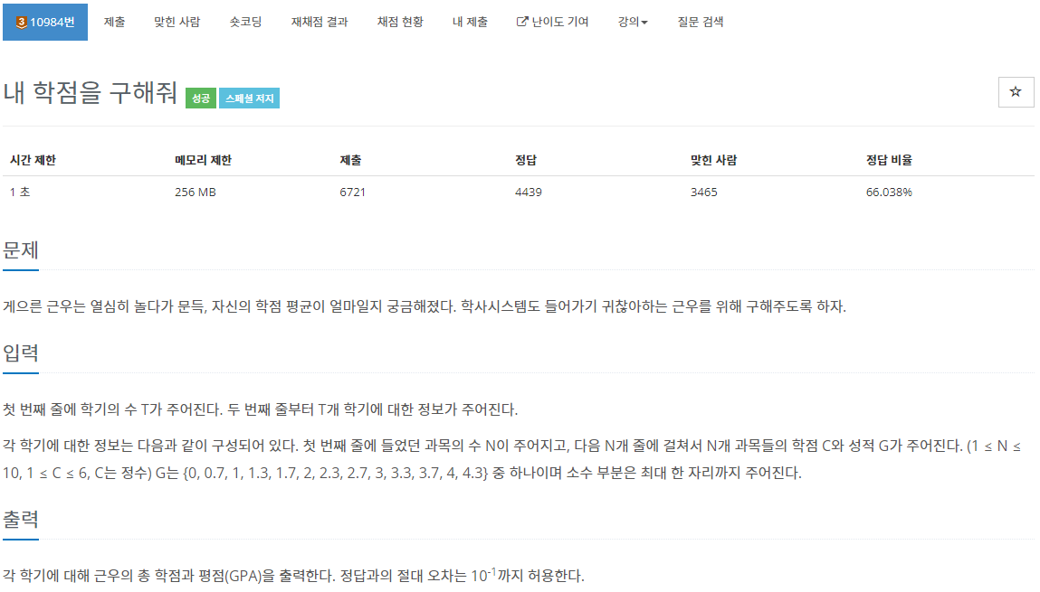 10984번: 내 학점을 구해줘