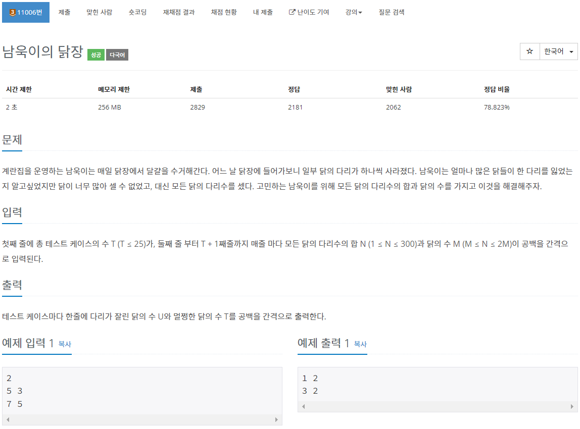 11006번: 남욱이의 닭장