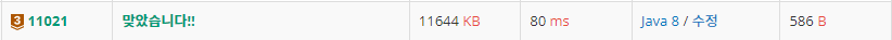 [백준/BOJ] 1350번 : 진짜 공간 (JAVA / 자바) (0) 2022.02.17 [백준/BOJ] 11022번 : A+B - 8 (JAVA / 자바) (0) 2022.02.17 [백준/BOJ] 1264번 : 모음의 개수 (JAVA / 자바) (0) 2022.02.17 [백준/BOJ] 11006번 : 남욱이의 닭장 (JAVA / 자바) (0) 2022.02.16 [백준/BOJ] 10984번 : 내 학점을 구해줘 (JAVA / 자바) (0) 2022.02.16