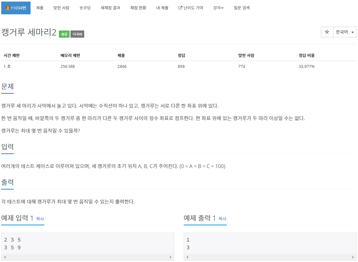 11034번: 캥거루 세마리2