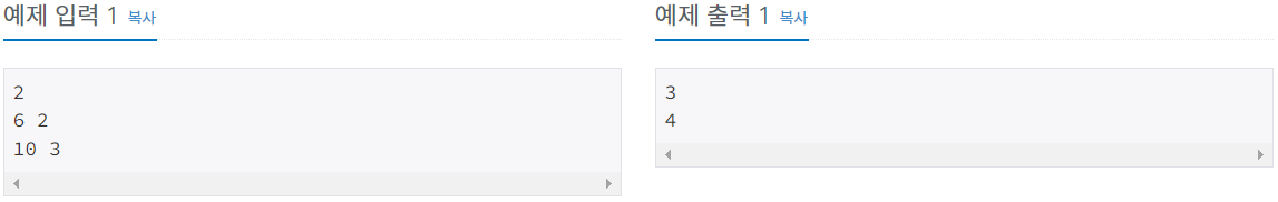 나눠서 떨어지지 않으면 나눈 몫에 +1 해서 출력