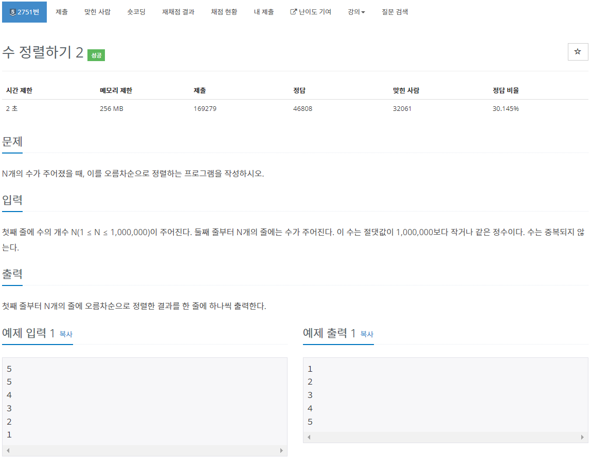 [백준/BOJ] 2751번 : 수 정렬하기 2 (JAVA / 자바)백준 2022. 2. 25. 18:44