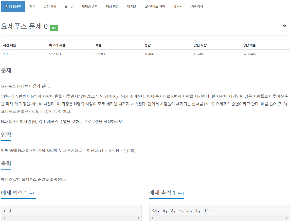 11866번: 요세푸스 문제 0