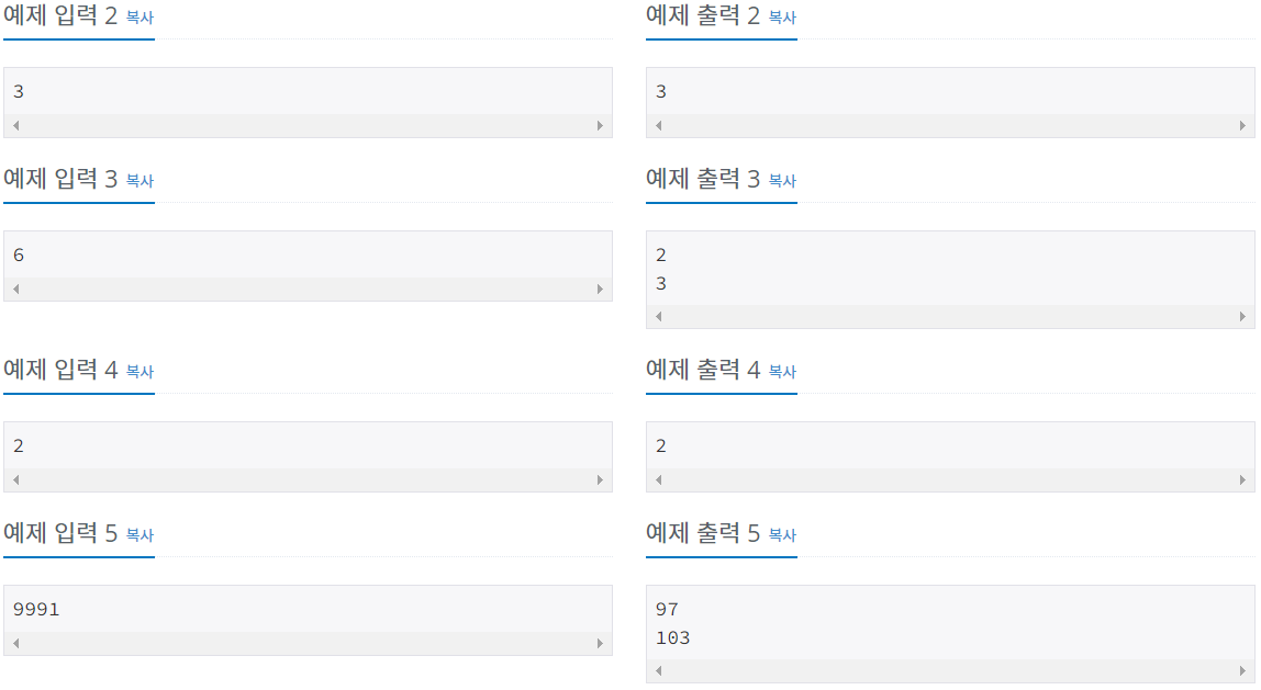 원래 소인수분해에서 소인수는 소수들로만 이루어져있다. 그렇다면 나누는 값들을 소수 판별해서 해야하지 않나? 하지만 앞에서 소수 2로 나누어지지 않는 값이라면 소수가 아닌 4로는 당연 나누어 떨어지지 않을 것이고, 3으로 나누어 떨어지지 않는다면 6이나 9로 당연히 나누지 못할 것이다. 그렇다고 +1로 모든 경우를 보기에는 1000만이란 값은 충분했지만, 더 많은 특히 상당한 자릿수의 소수가 주어진다면 시간 안에 처리 하지 못할 것이다.
