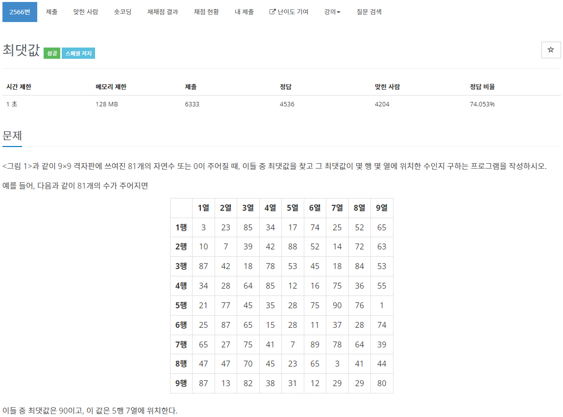 2566번: 최댓값
