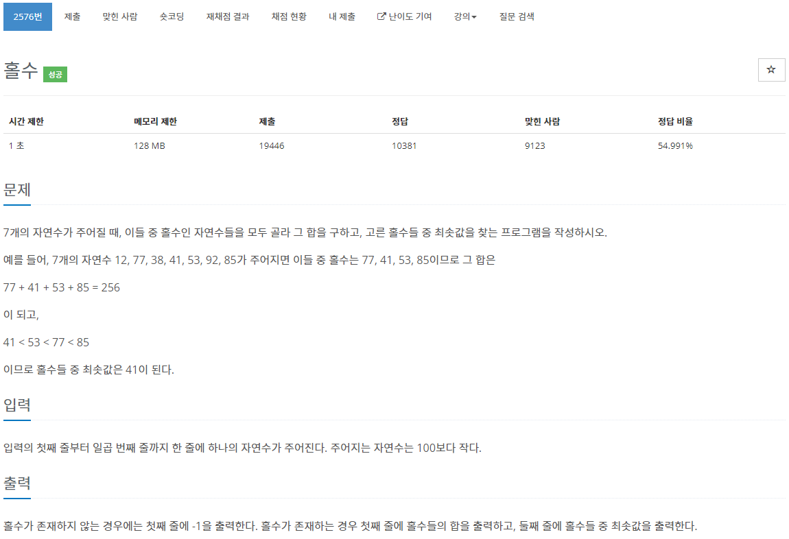 2576번: 홀수