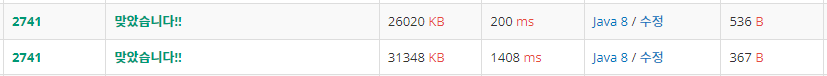 위에가 BufferedWriter를 사용한 코드 / 아래가 print를 사용한 코드 확연히 차이가 난다. 하지만 그만큼 import하고 생성하고 write, flush, close까지 입력해야 할 것들이 많아졌기에 코드 길이도 그만큼 길어졌다.